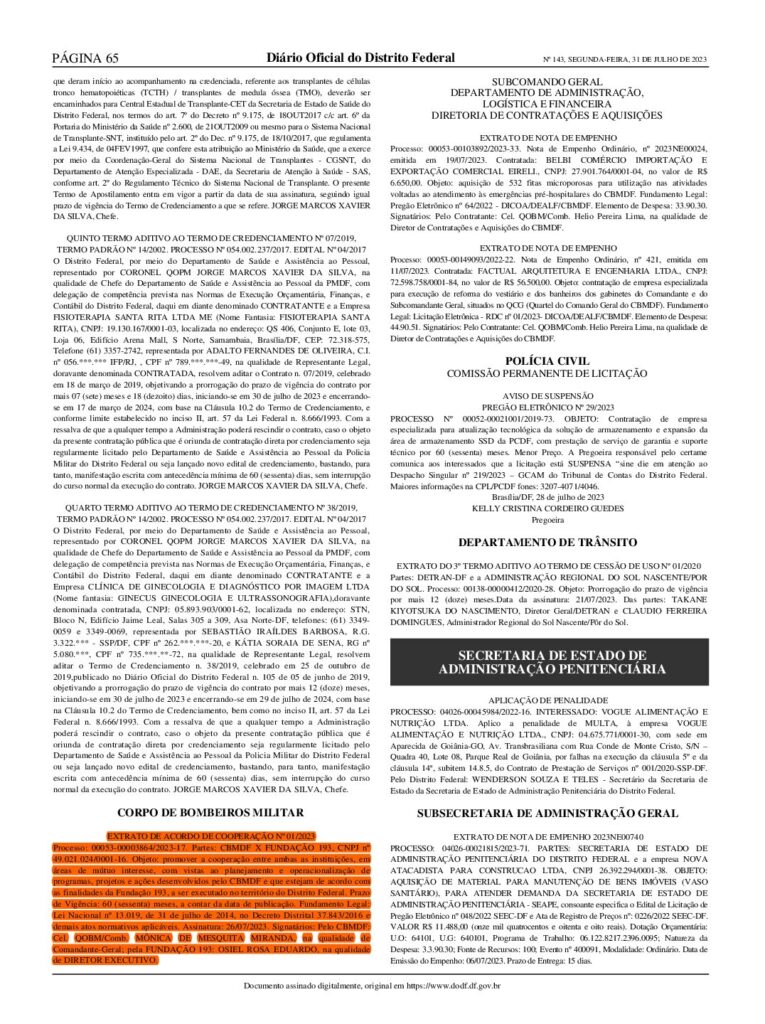 Processo: 00053-00003864/2023-17. Partes: CBMDF X FUNDAÇÃO 193, CNPJ nº 49.021.024/0001-16.