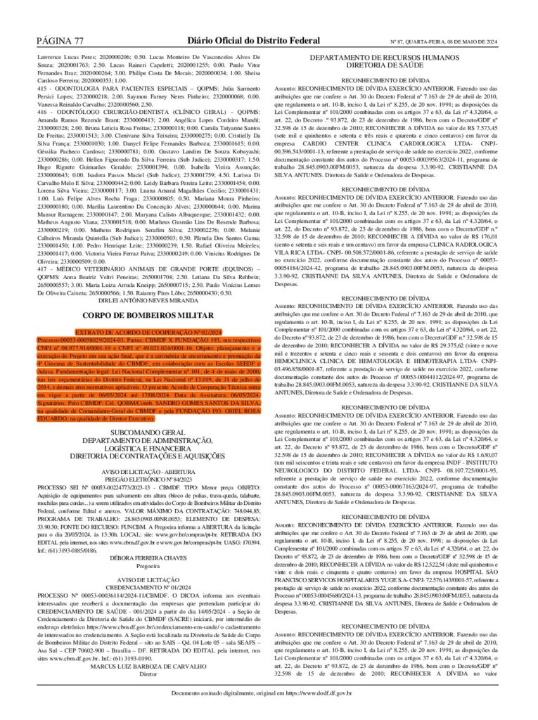 Partes: CBMDF X FUNDAÇÃO 193 X ADMINISTRAÇÃO REGIONAL DE ÁGUAS CLARAS, nos respectivos CNPJ nº 08.977.914/0001-19, CNPJ nº 49.021.024/0001-16 e CNPJ nº 05.750.487/0001-43.